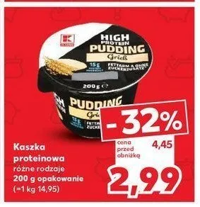 Cena produktu r贸偶ni si臋 w zale偶no艣ci od wybranego sklepu. Niestety nie posiadamy danych o aktualnych promocjach, jednak w艣r贸d archiwalnych ofert Kaszka proteinowa mleczna K-classic kosztuje od 2,99 z艂.