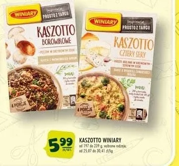 Cena produktu r贸偶ni si臋 w zale偶no艣ci od wybranego sklepu. Niestety nie posiadamy danych o aktualnych promocjach, jednak w艣r贸d archiwalnych ofert Kaszotto borowikowe Winiary kaszotto kosztuje od 4,59 z艂 do 5,99 z艂.