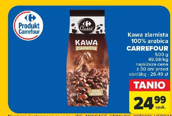 Ile kosztuje Kawa 100% arabica Carrefour?