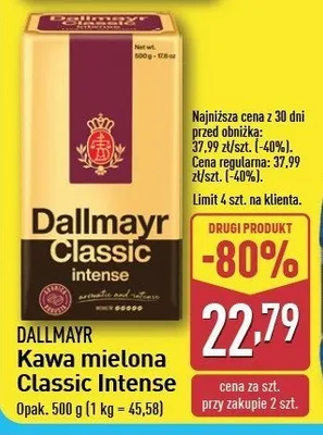 Cena produktu r贸偶ni si臋 w zale偶no艣ci od wybranego sklepu. Niestety nie posiadamy danych o aktualnych promocjach, jednak w艣r贸d archiwalnych ofert Kawa Dallmayr classic kosztuje od 13,75 z艂 do 29,99 z艂.