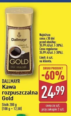 Zastanawiasz si臋, gdzie kupi膰 i ile kosztuje produkt Kawa Dallmayr gold? Regularnie sprawdzamy, czy jest promocja na ten produkt w Biedronka, Lidl, Kaufland, Auchan, Netto, Makro i innych sklepach. Aktualnie nie posiadamy ofert promocyjnych na ten produkt.