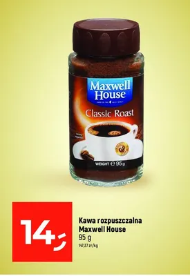 Cena produktu r贸偶ni si臋 w zale偶no艣ci od wybranego sklepu. Niestety nie posiadamy danych o aktualnych promocjach, jednak w艣r贸d archiwalnych ofert Kawa MAXWELL HOUSE CLASSIC ROAST kosztuje od 14 z艂.