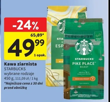 Cena produktu r贸偶ni si臋 w zale偶no艣ci od wybranego sklepu. Niestety nie posiadamy danych o aktualnych promocjach, jednak w艣r贸d archiwalnych ofert Kawa Starbucks blonde espresso blonde roast kosztuje od 25,99 z艂 do 59,99 z艂.