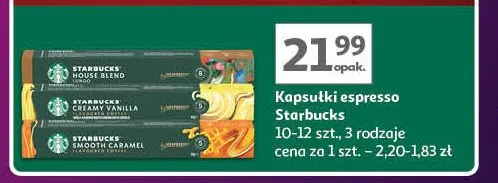 Cena produktu r贸偶ni si臋 w zale偶no艣ci od wybranego sklepu. Niestety nie posiadamy danych o aktualnych promocjach, jednak w艣r贸d archiwalnych ofert Kawa Starbucks smooth caramel kosztuje od 20,99 z艂 do 22,99 z艂.