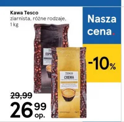 Ile kosztuje Kawa Tesco crema?