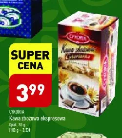 Cena produktu różni się w zależności od wybranego sklepu. Niestety nie posiadamy danych o aktualnych promocjach, jednak wśród archiwalnych ofert Kawa zbożowa z cykorią CYKORIA CYKORIANKA kosztuje od 3,99 zł.