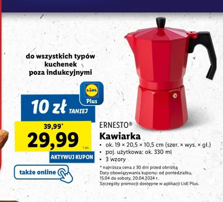 Zastanawiasz si臋, gdzie kupi膰 i ile kosztuje produkt Kawiarka 330 ml Ernesto? Regularnie sprawdzamy, czy jest promocja na ten produkt w Biedronka, Lidl, Kaufland, Auchan, Netto, Makro i innych sklepach. Aktualnie nie posiadamy ofert promocyjnych na ten produkt.