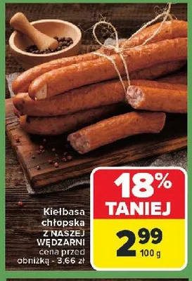 Kiełbasa chłopska Nasza wędzarnia carrefour promocje w sklepach - znajdź ofertę dla siebie!