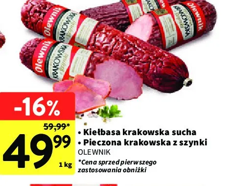 Kie艂basa krakowska sucha wieprzowa Olewnik promocje w sklepach - znajd藕 ofert臋 dla siebie!