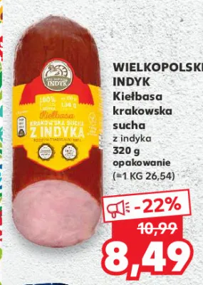 Przegl膮daj oferty promocyjne na produkt Kie艂basa krakowska sucha z indyka Wielkopolski indyk