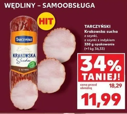 Kie艂basa krakowska sucha z indykiem Tarczy艅ski promocje w sklepach - znajd藕 ofert臋 dla siebie!