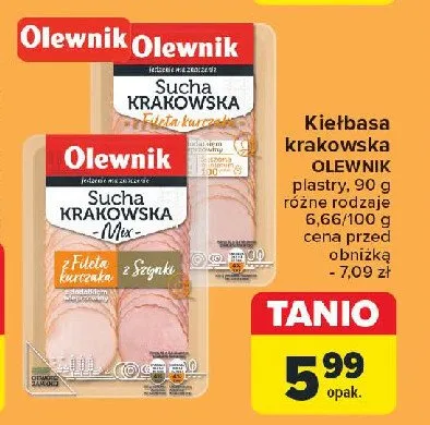 Kie艂basa krakowska sucha z szynki i z filetem z kurczaka Olewnik promocje w sklepach - znajd藕 ofert臋 dla siebie!