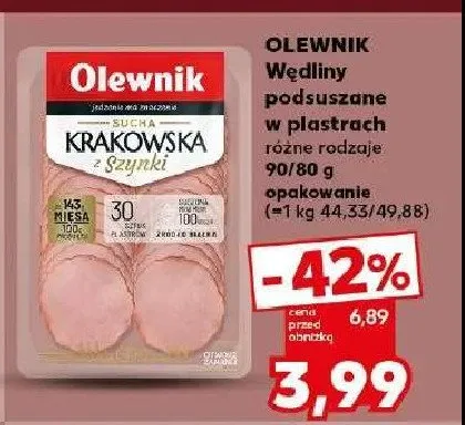 Kie艂basa krakowska sucha z szynki Olewnik promocje w sklepach - znajd藕 ofert臋 dla siebie!