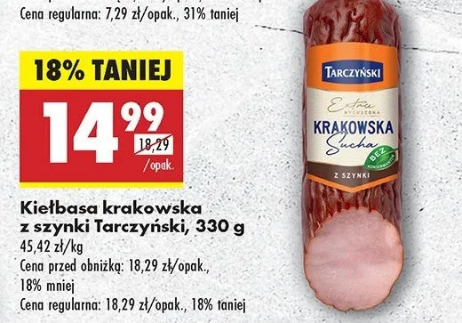 Kie艂basa krakowska sucha z szynki Tarczy艅ski promocje w sklepach - znajd藕 ofert臋 dla siebie!