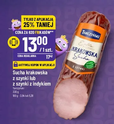 Przegl膮daj oferty promocyjne na produkt Kie艂basa krakowska sucha z szynki Tarczy艅ski kabanos extra