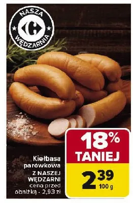 Przegl膮daj oferty promocyjne na produkt Kie艂basa par贸wkowa Nasza w臋dzarnia carrefour