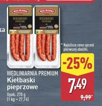 Cena produktu r贸偶ni si臋 w zale偶no艣ci od wybranego sklepu. Produkt Kie艂baski pieprzowe W臋dliniarnia premium mo偶esz kupi膰 w promocji ju偶 od 8,49 z艂. Najta艅sza oferta, jak膮 mamy w naszej bazie jest z sieci Aldi. Kie艂baski pieprzowe W臋dliniarnia premium kosztuje aktualnie 8,49 z艂. Zobacz ofert臋