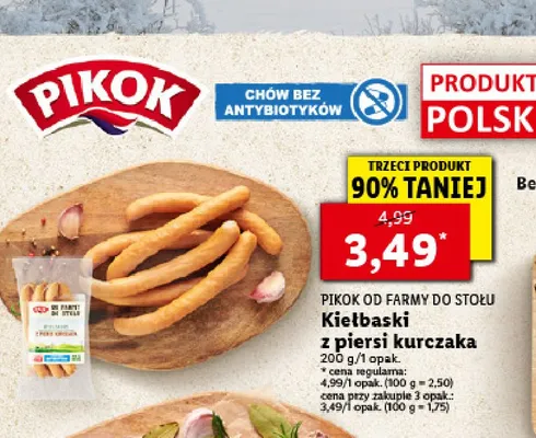 Gdzie mo偶na tanio kupi膰 produkt Kie艂baski z piersi kurczaka Pikok od farmy do sto艂u?