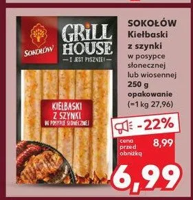 Gdzie można tanio kupić produkt Kiełbaski z szynki w posypce słonecznej Sokołów grill house?