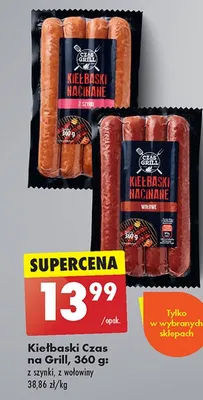 Cena produktu r贸偶ni si臋 w zale偶no艣ci od wybranego sklepu. Niestety nie posiadamy danych o aktualnych promocjach, jednak w艣r贸d archiwalnych ofert Kie艂baski z wo艂owiny Czas na grill kosztuje od 11,99 z艂 do 13,99 z艂.