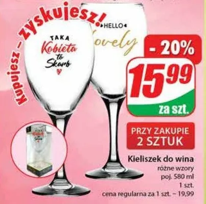 Zastanawiasz si臋, gdzie kupi膰 i ile kosztuje produkt Kieliszek dzie艅 kobiet 580 ml? Regularnie sprawdzamy, czy jest promocja na ten produkt w Biedronka, Lidl, Kaufland, Auchan, Netto, Makro i innych sklepach. Aktualnie posiadamy 1 ofert臋 promocyjn膮 na ten produkt. Ceny zaczynaj膮 si臋 od 39,99z艂!
