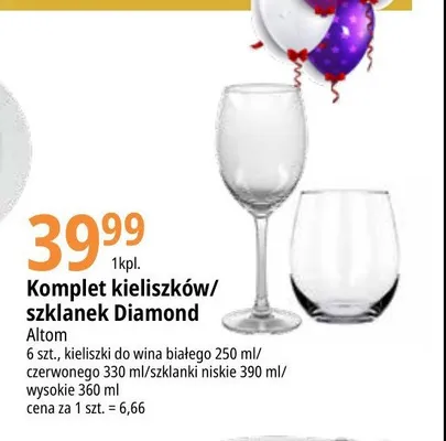 Cena produktu r贸偶ni si臋 w zale偶no艣ci od wybranego sklepu. Niestety nie posiadamy danych o aktualnych promocjach, jednak w艣r贸d archiwalnych ofert Kieliszki do bia艂ego wina 250 ml Altom kosztuje od 49,99 z艂.