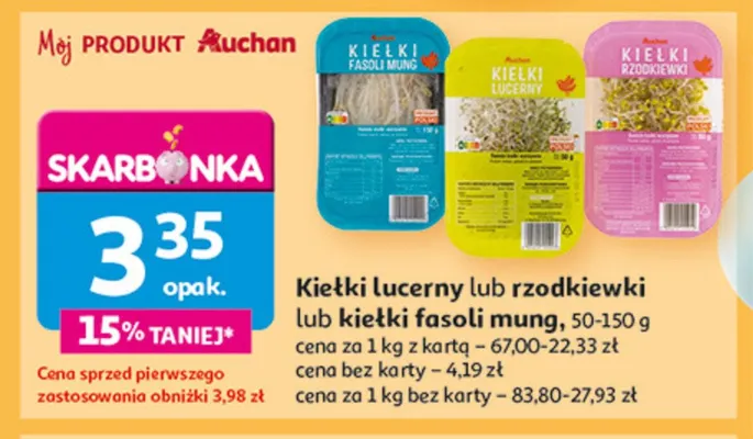 Przegl膮daj podobne oferty promocyjne do Kie艂ki fasoli mung Auchan r贸偶norodne (logo czerwone)!