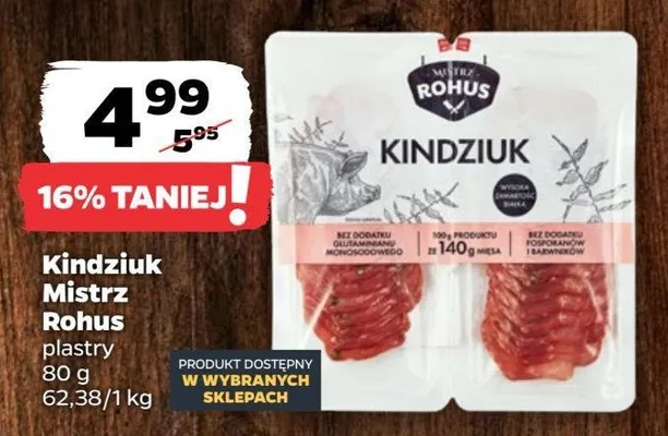 Zastanawiasz si臋, gdzie kupi膰 i ile kosztuje produkt Kindziuk Mistrz rohus? Regularnie sprawdzamy, czy jest promocja na ten produkt w Biedronka, Lidl, Kaufland, Auchan, Netto, Makro i innych sklepach. Aktualnie nie posiadamy ofert promocyjnych na ten produkt.