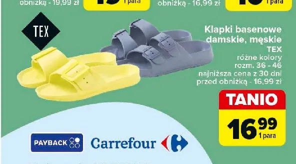 Nie wiesz gdzie kupi膰 produkt Klapki basenowe damskie Tex w promocji? Aktualnie produkt Klapki basenowe damskie Tex znajduje si臋 w atrakcyjnej cenie w sklepach Carrefour. Opr贸cz tego produkt mo偶na kupi膰 w innych sklepach, jednak aktulanie nie posiadamy informacji o promocjach w nich.