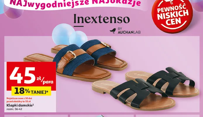 Ile kosztuje Klapki damskie 36-42 Auchan inextenso?