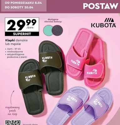 Klapki damskie basenowe 37-45 KUBOTA promocje w sklepach - znajd藕 ofert臋 dla siebie!