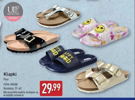Cena produktu r贸偶ni si臋 w zale偶no艣ci od wybranego sklepu. Produkt Klapki damskie Up2fashion mo偶esz kupi膰 w promocji ju偶 od 29,99 z艂 do 36,78 z艂. Najta艅sza oferta, jak膮 mamy w naszej bazie jest z sieci Selgros. Klapki damskie Up2fashion kosztuje aktualnie 29,99 z艂. Zobacz ofert臋