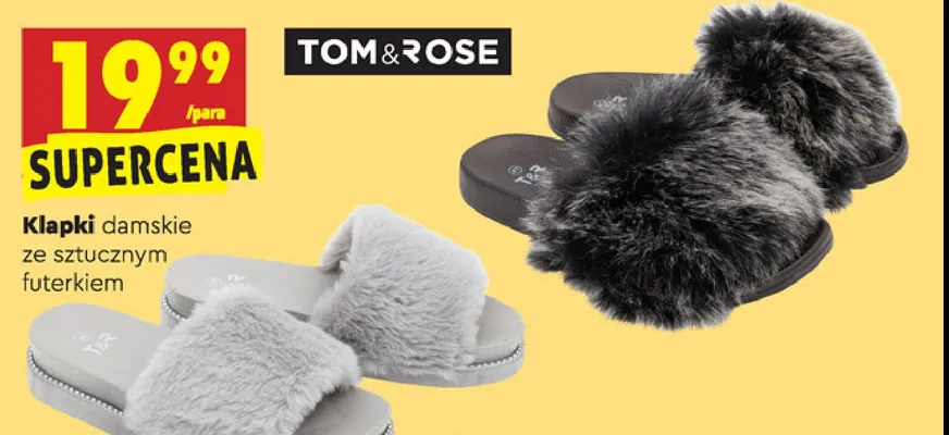 Cena produktu r贸偶ni si臋 w zale偶no艣ci od wybranego sklepu. Niestety nie posiadamy danych o aktualnych promocjach, jednak w艣r贸d archiwalnych ofert Klapki damskie ze sztucznym futerkiem Tom & rose kosztuje od 19,99 z艂.