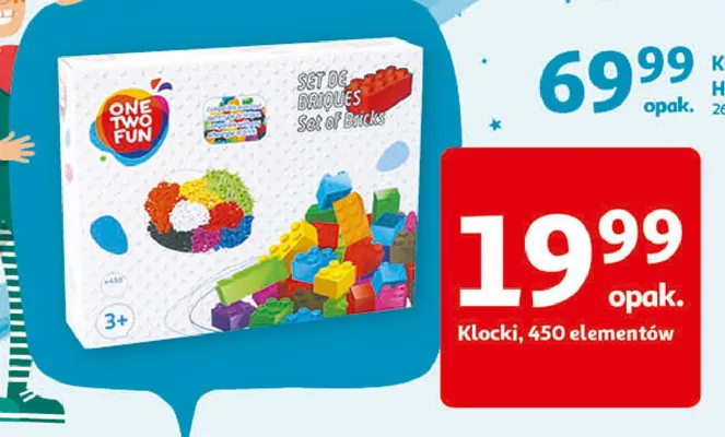 Cena produktu r贸偶ni si臋 w zale偶no艣ci od wybranego sklepu. Niestety nie posiadamy danych o aktualnych promocjach, jednak w艣r贸d archiwalnych ofert Klocki 450 el. One two fun kosztuje od 19,99 z艂.