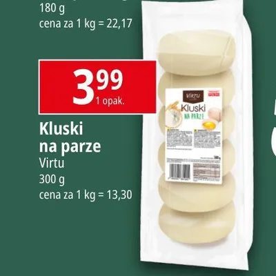 Cena produktu r贸偶ni si臋 w zale偶no艣ci od wybranego sklepu. Niestety nie posiadamy danych o aktualnych promocjach, jednak w艣r贸d archiwalnych ofert Kluski na parze Virtu kosztuje od 3,29 z艂 do 8,99 z艂.