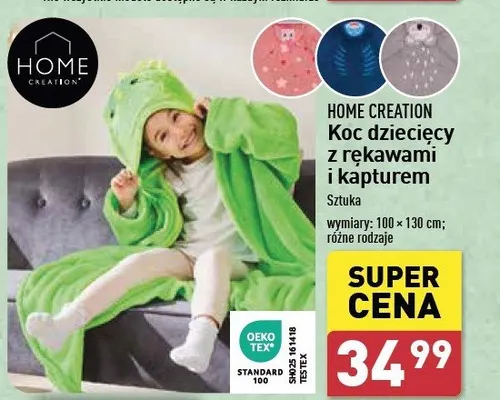 Cena produktu r贸偶ni si臋 w zale偶no艣ci od wybranego sklepu. Niestety nie posiadamy danych o aktualnych promocjach, jednak w艣r贸d archiwalnych ofert Koc dzieci臋cy z rekawami i kapturem 100 x 130 cm Home creation kosztuje od 34,99 z艂.
