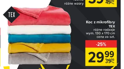 Cena produktu r贸偶ni si臋 w zale偶no艣ci od wybranego sklepu. Produkt Koc mikrofibra 130 x 170 cm Tex mo偶esz kupi膰 w promocji ju偶 od 39,99 z艂. Najta艅sza oferta, jak膮 mamy w naszej bazie jest z sieci Stokrotka. Koc mikrofibra 130 x 170 cm Tex kosztuje aktualnie 39,99 z艂. Zobacz ofert臋