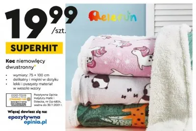 Przegl膮daj podobne oferty promocyjne do Koc niemowl臋cy dwustronny 75 x 100 cm Elefun!