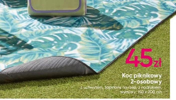 Cena produktu r贸偶ni si臋 w zale偶no艣ci od wybranego sklepu. Produkt Koc piknikowy 150 x 120 cm mo偶esz kupi膰 w promocji ju偶 od 24,99 z艂 do 49,99 z艂. Najta艅sza oferta, jak膮 mamy w naszej bazie jest z sieci Biedronka. Koc piknikowy 150 x 120 cm kosztuje aktualnie 24,99 z艂. Zobacz ofert臋