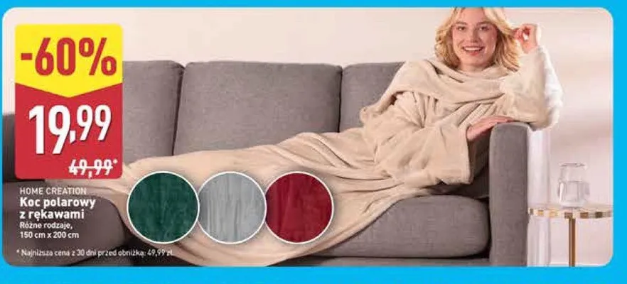 Zastanawiasz si臋, gdzie kupi膰 i ile kosztuje produkt Koc polarowy z r臋kawami 150 x 200 cm Home creation? Regularnie sprawdzamy, czy jest promocja na ten produkt w Biedronka, Lidl, Kaufland, Auchan, Netto, Makro i innych sklepach. Aktualnie nie posiadamy ofert promocyjnych na ten produkt.