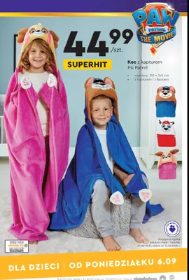 Przegl膮daj podobne oferty promocyjne do Koc z kapturem psi patrol 110 x 140 cm!