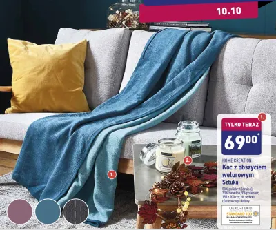 Cena produktu r贸偶ni si臋 w zale偶no艣ci od wybranego sklepu. Niestety nie posiadamy danych o aktualnych promocjach, jednak w艣r贸d archiwalnych ofert Koc z obszyciem welurowym 150 x 200 cm Home creation kosztuje od 69 z艂.