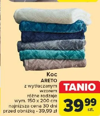 Cena produktu r贸偶ni si臋 w zale偶no艣ci od wybranego sklepu. Produkt Koc z wyt艂aczanym wzorem 150 x 200 cm Areto mo偶esz kupi膰 w promocji ju偶 od 39,99 z艂. Najta艅sza oferta, jak膮 mamy w naszej bazie jest z sieci Stokrotka. Koc z wyt艂aczanym wzorem 150 x 200 cm Areto kosztuje aktualnie 39,99 z艂. Zobacz ofert臋