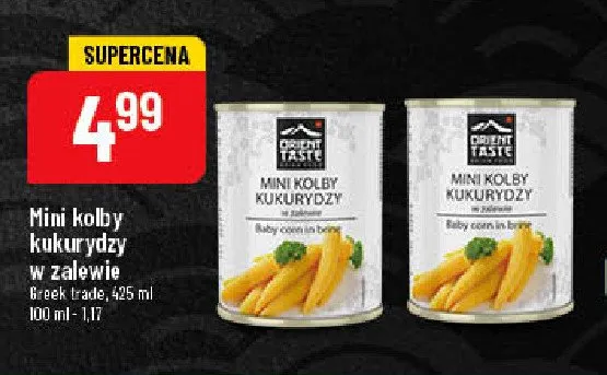 Cena produktu r贸偶ni si臋 w zale偶no艣ci od wybranego sklepu. Niestety nie posiadamy danych o aktualnych promocjach, jednak w艣r贸d archiwalnych ofert Kolby kukurydzy mini Orient taste kosztuje od 4,99 z艂.