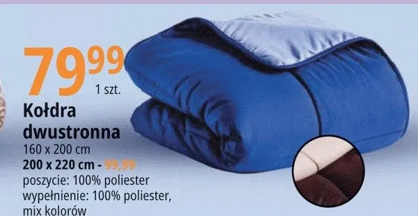 Zastanawiasz si臋, gdzie kupi膰 i ile kosztuje produkt Ko艂dra dwustronna 160 x 200 cm? Regularnie sprawdzamy, czy jest promocja na ten produkt w Biedronka, Lidl, Kaufland, Auchan, Netto, Makro i innych sklepach. Aktualnie posiadamy 1 ofert臋 promocyjn膮 na ten produkt. Ceny zaczynaj膮 si臋 od 49,99z艂!