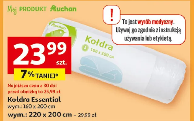 Ko艂dra essential 160 x 200 cm Auchan promocje w sklepach - znajd藕 ofert臋 dla siebie!