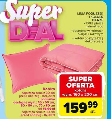Zastanawiasz si臋, gdzie kupi膰 i ile kosztuje produkt Ko艂dra z pierza 160 x 200 cm? Regularnie sprawdzamy, czy jest promocja na ten produkt w Biedronka, Lidl, Kaufland, Auchan, Netto, Makro i innych sklepach. Aktualnie nie posiadamy ofert promocyjnych na ten produkt.