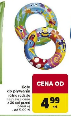 Cena produktu r贸偶ni si臋 w zale偶no艣ci od wybranego sklepu. Niestety nie posiadamy danych o aktualnych promocjach, jednak w艣r贸d archiwalnych ofert Ko艂o do p艂ywania kosztuje od 4,99 z艂 do 8,99 z艂.