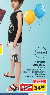 Cena produktu r贸偶ni si臋 w zale偶no艣ci od wybranego sklepu. Niestety nie posiadamy danych o aktualnych promocjach, jednak w艣r贸d archiwalnych ofert Komplet ch艂opi臋cy: t-shirt + bermudy kosztuje od 44,99 z艂.