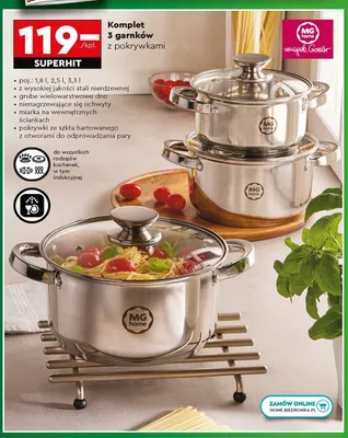 Przegl膮daj podobne oferty promocyjne do Komplet garnk贸w z pokrywami 18 cm + 20 cm + 22 cm Mg home!